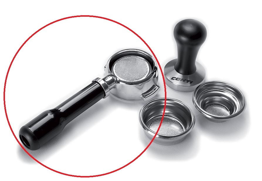 Portes filtres sans fond, accessoires pour les machines à café Conti, permettant de visualiser l’extraction des café, fabriqués selon des procédés hautement technologiques pour optimiser l’extraction des arômes du café.
