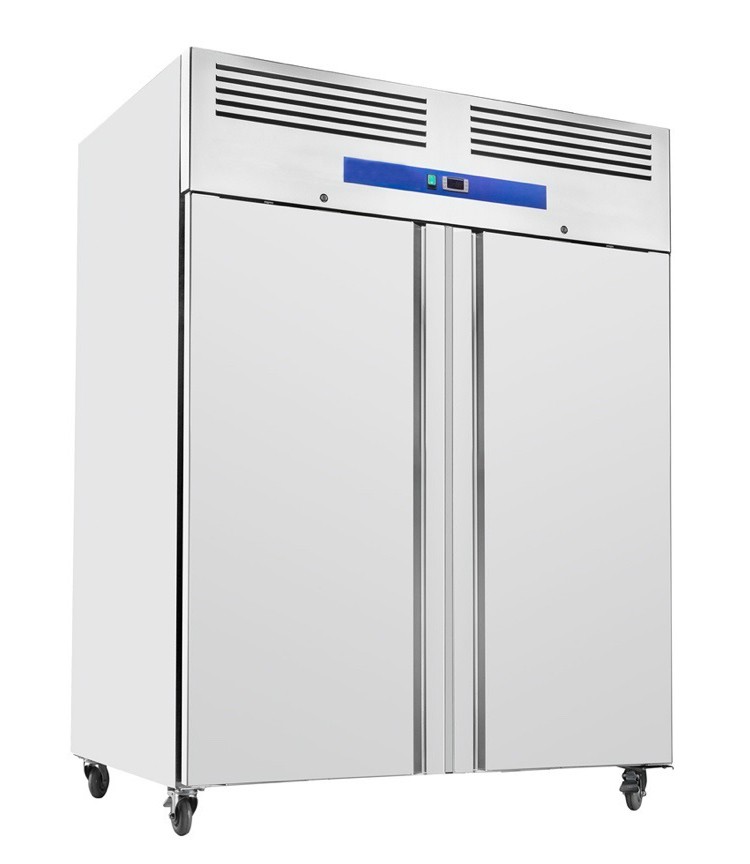 Armoire froide négative, 2 portes, 1400 litres, conçue pour le conditionnement et le stockage de produits alimentaires.
