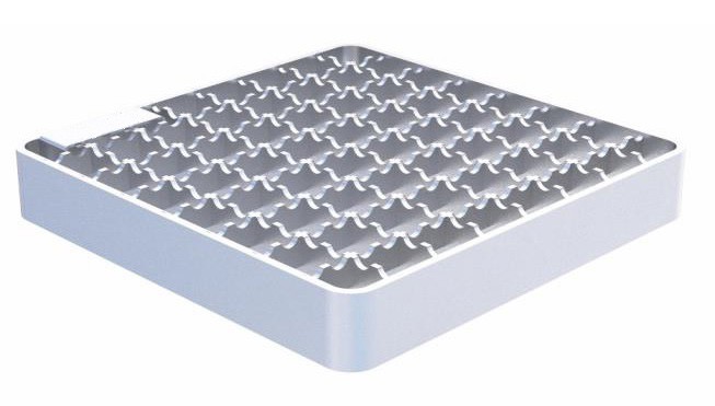 Grille caillebotis antidérapante avec crantage double à maille 19x19 mm, pour caniveau largeur 400mm.