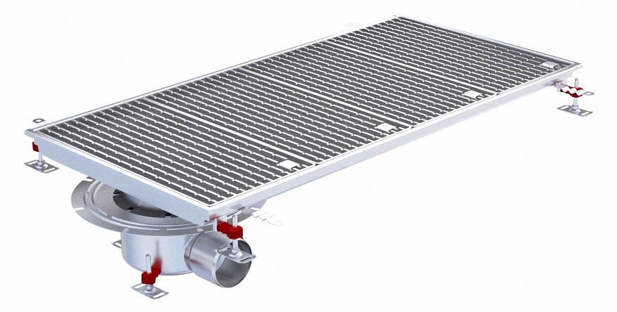 Siphon téléscopique Epur HygieneFirst avec grilles à barreaux 600 x 1200 mm sortie horizontale en bout Ø 110 mm