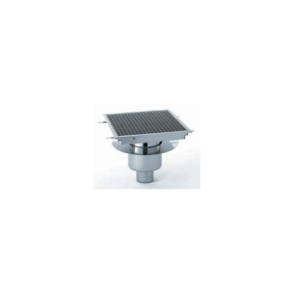 Caniveau avec cuvette réglable inox, 1200 x 400 mm, sortie verticale centrée, Ø 100 mm.