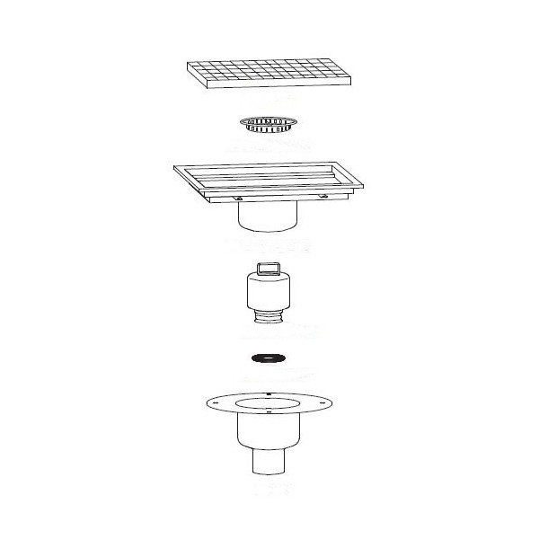 Siphon avec cuvette réglable inox 1200 x 400 mm sortie verticale centrée Ø 100 mm