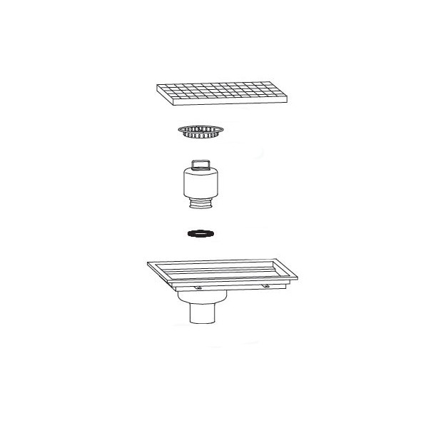 Siphon avec cuvette monobloc inox 1500 x 500 mm sortie verticale décentrée Ø 100 mm
