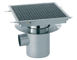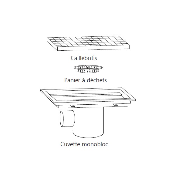 Siphon avec cuvette monobloc inox 1500 x 250 mm sortie horizontale centrée Ø 100 mm
