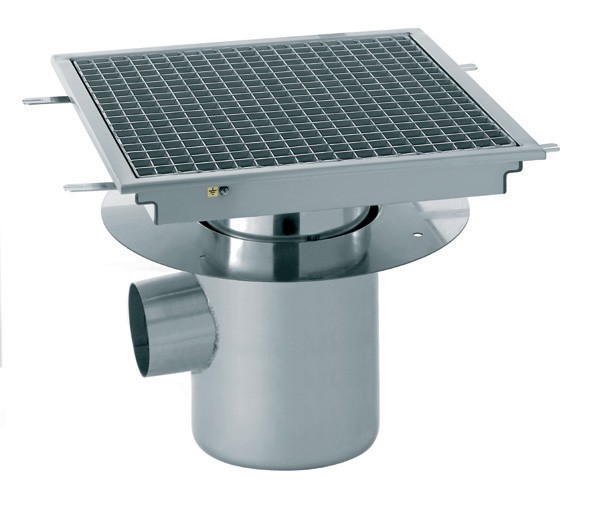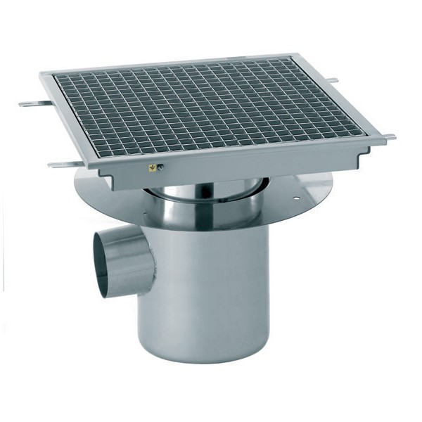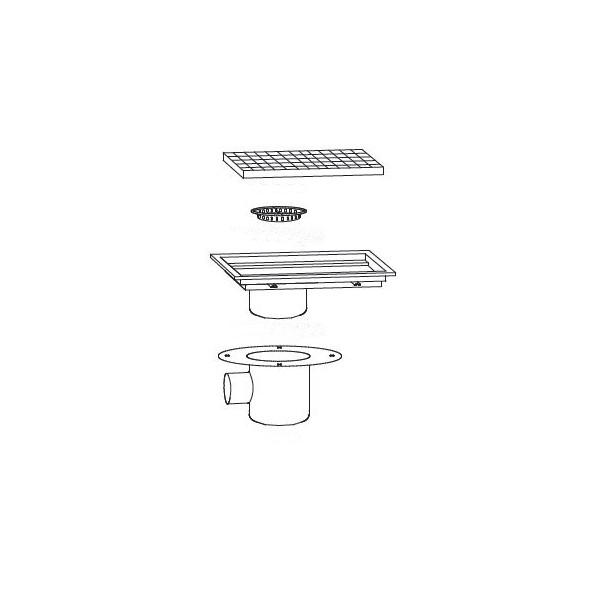 Siphon avec cuvette réglable inox 1200 x 400 mm sortie horizontale décentrée Ø 100 mm