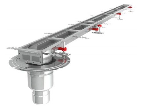 Caniveau Modul 125, pour le drainage intérieur de vos bâtiments, il est également adapté aux petites cuisines.