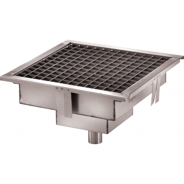 Caniveau de sol cuisine professionnelle sortie Verticale L 400 x P 400 mm