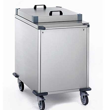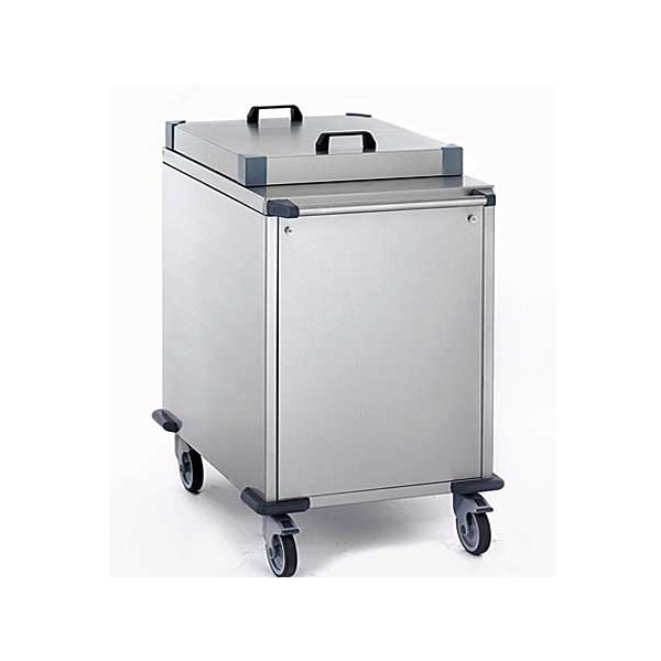 Chariot à verres à niveau constant acier inoxydable avec habillage et couvercle inox, plate-forme 530 x 530 mm
