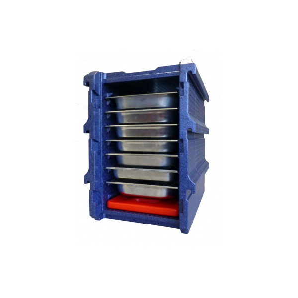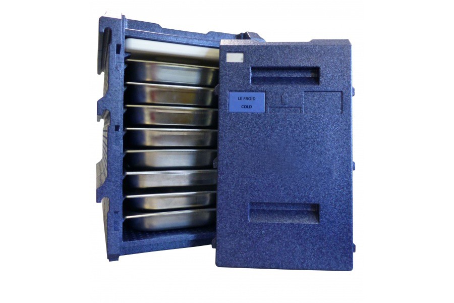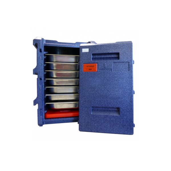 Coffre isotherme PPE 8 niveaux GN1/1 bleu, conçu pour stocker et transporter les produits frais, froids, surgelés, également idéal pour les liaisons chaudes ou froides des plats préparés.