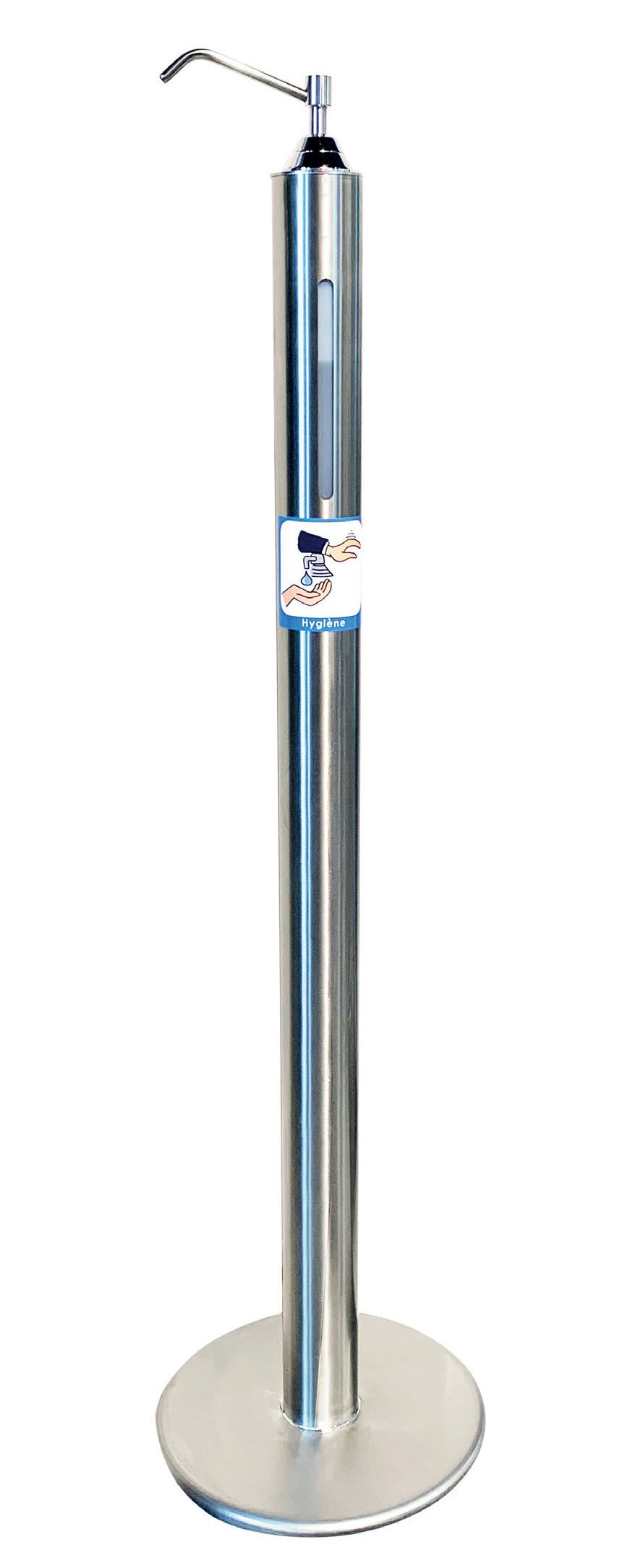 Colonne à gel hydroalcoolique avec poussoir, spécialement conçu pour répondre aux mesures d'hygiène, existe en 2 versions; pour enfants et pour adultes, pratique pour l'hygiène en milieu scolaire.
