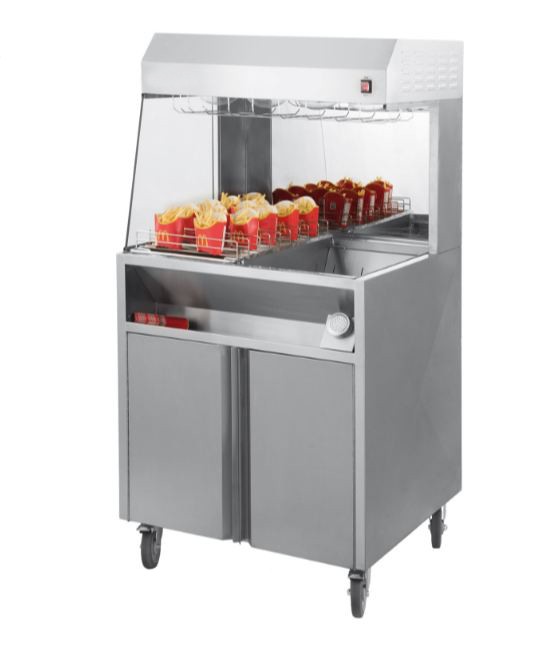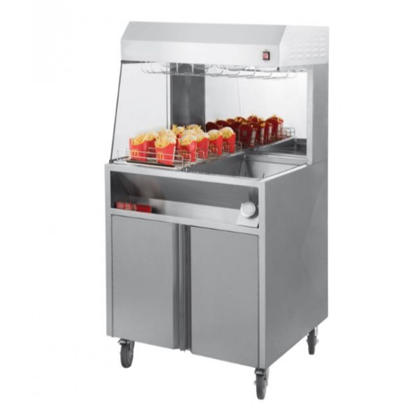 Poste de salage avec une structure en acier inoxydable, conçu specialement pour les snacks, permet de maintenir la chaleur de vos frites grâce à sa 4 ampoules chauffantes.