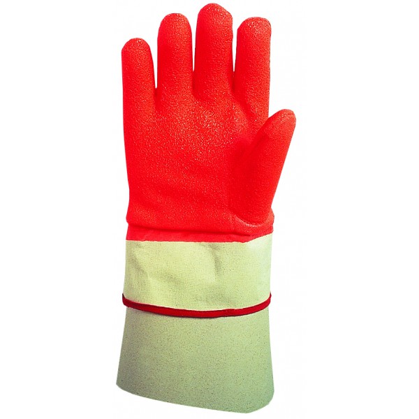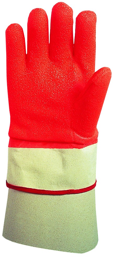 Gant de protection froid, caoutchouc PVC, orange/blanche, pour la manutention de produits congelés .