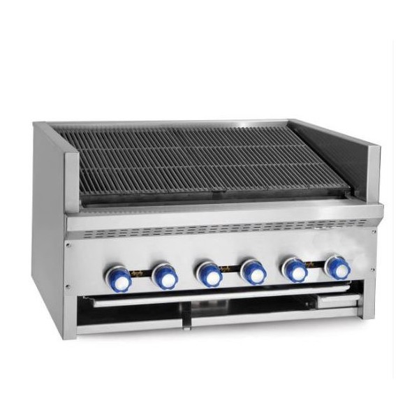 Grill à viandes Charcoal 3 positions gaz version sur meuble largeur 1829mm avec radiants en fonte ou en inox