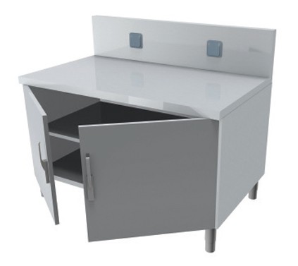 Meuble neutre pour trancheur, 4 portes battantes, destiné aux professionnels dans le secteur agro-alimentaire.