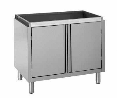 Meuble à 2 portes battantes sans dessus, idéal pour bien ranger et aménager vos matériels de cuisine.
