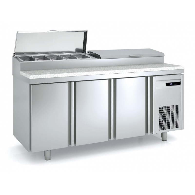 Meuble de préparation pizza, 3 portes pleines, 562 L, 10 bacs GN 1/3