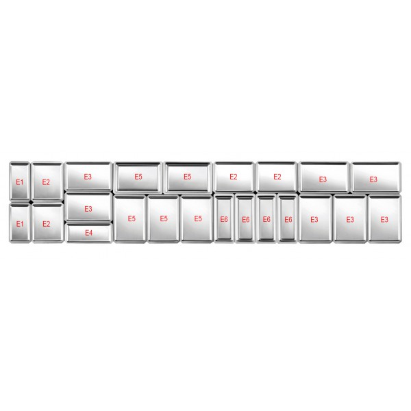 Plat inox pour vitrines réfrigérées P 700 mm, pans coupés, présentation type E3
