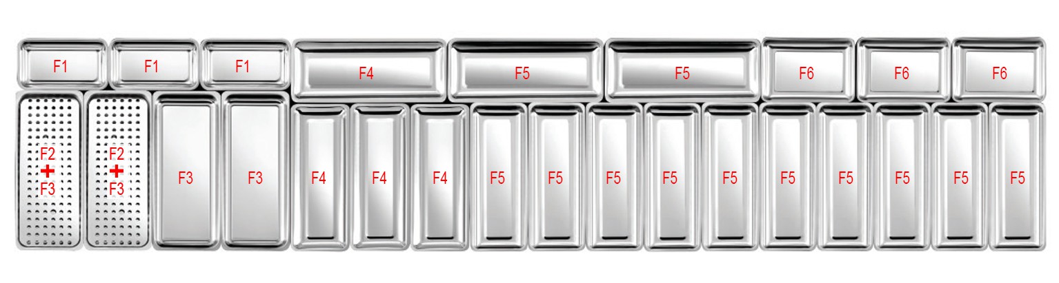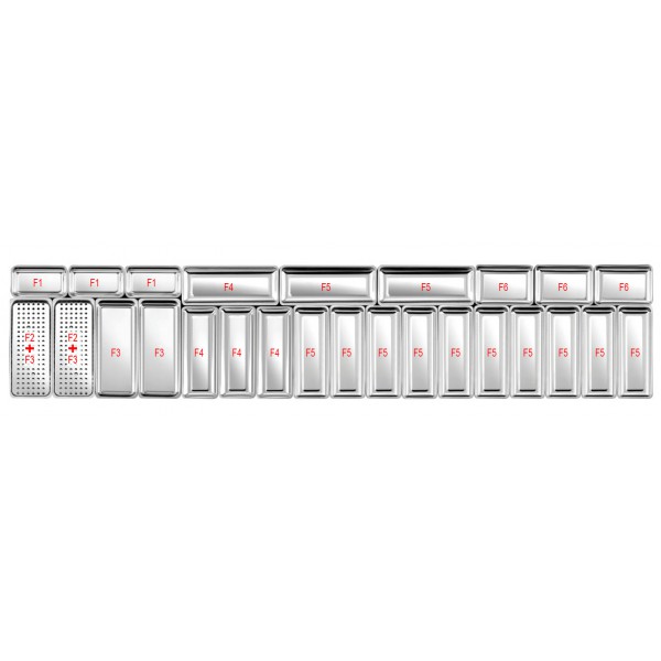 Plat inox pour vitrines réfrigérées P 700 mm, gratin (1,7 L), présentation type F6