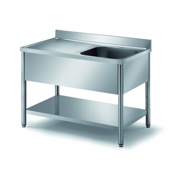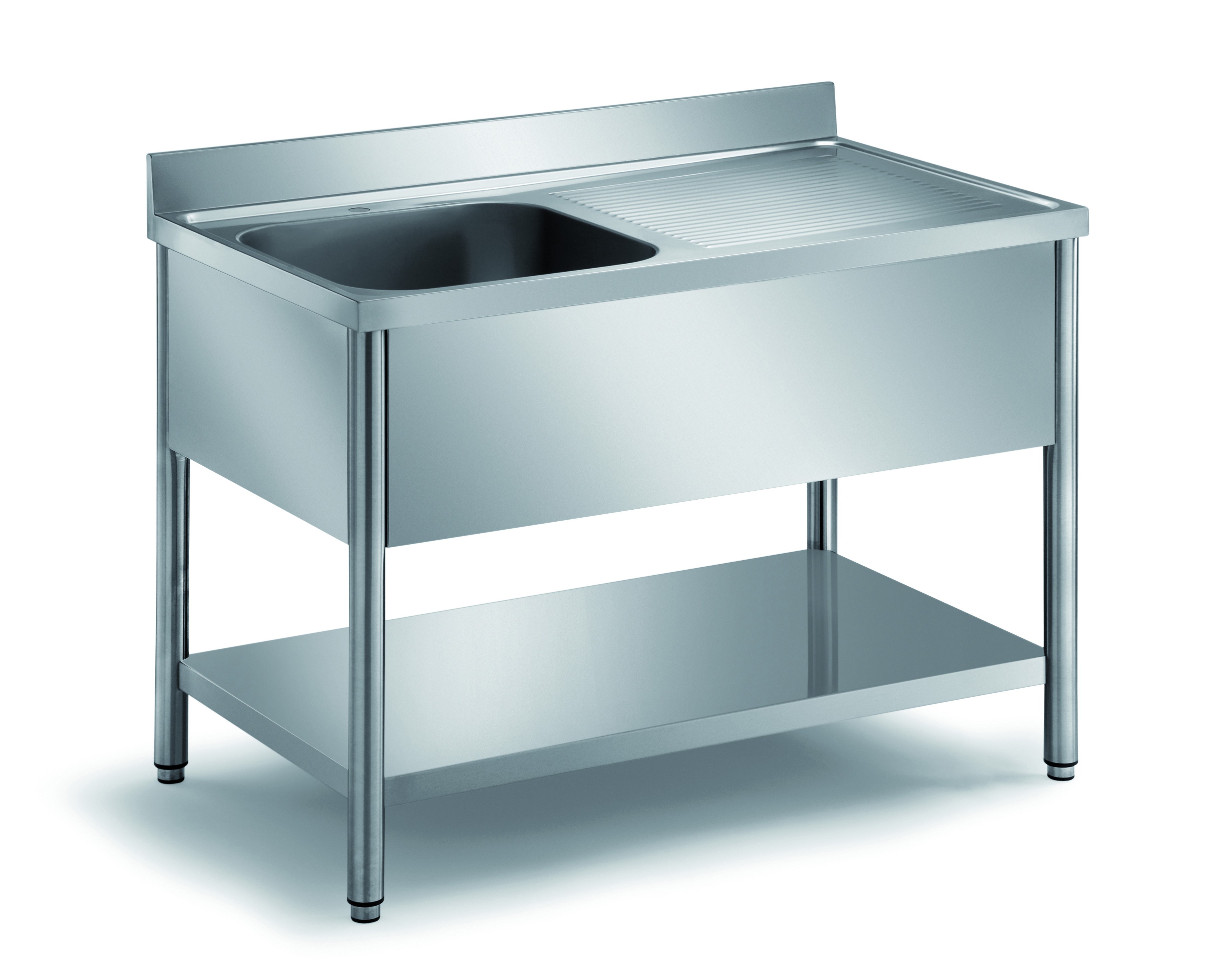 Plonge démontable sur pieds ronds avec étagère inox ferritique 1 bac prof 600 mm longueur 1000 mm