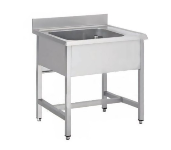 Plonge soudée sur pieds carrés sans étagère, indispensable pour assurer la propreté de vos vaisselles et de vos ustensiles de cuisine.