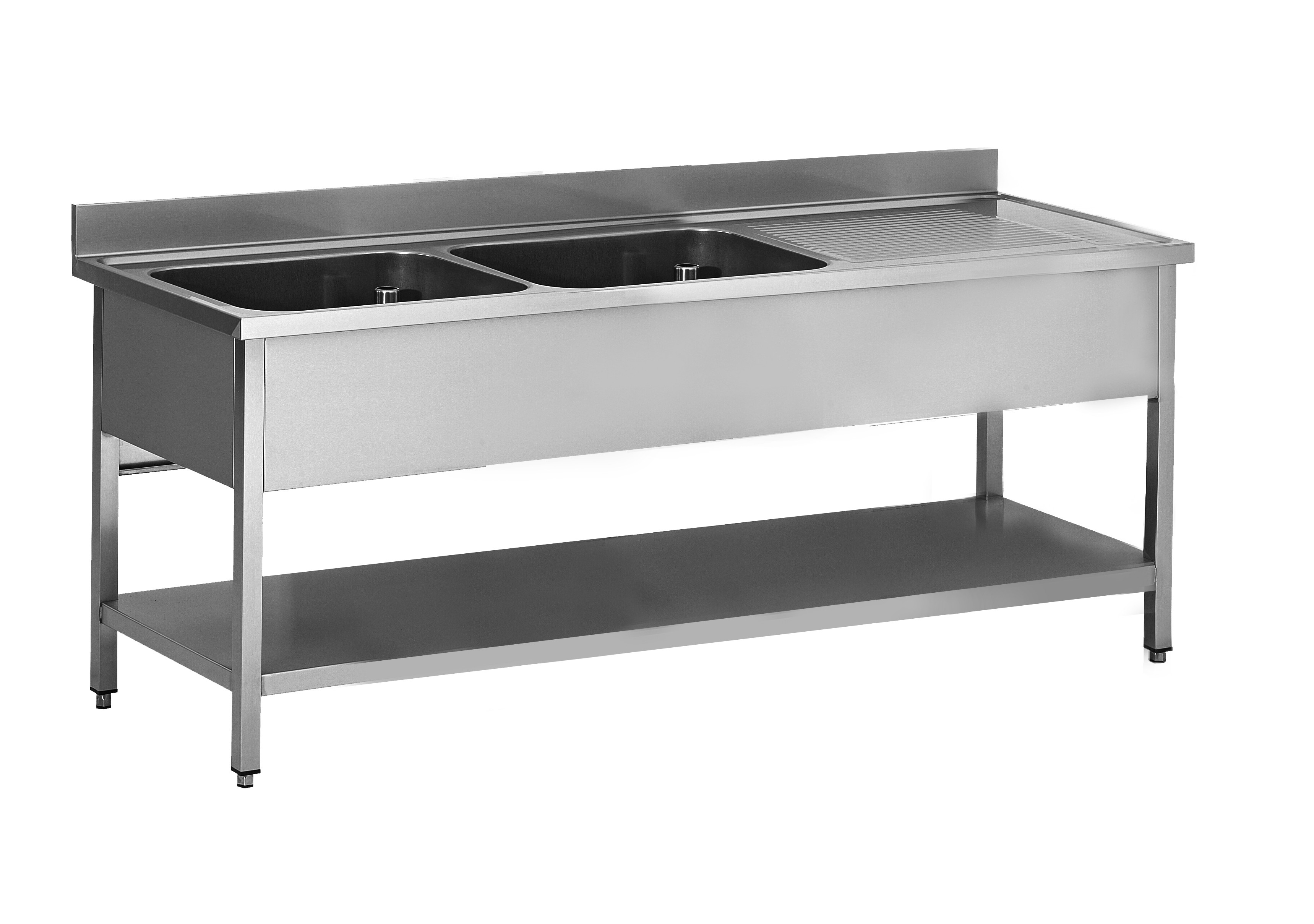 Plonge soudée sur pieds carrés avec étagère, indispensable pour assurer la propreté de vos vaisselles et de vos ustensiles de cuisine.