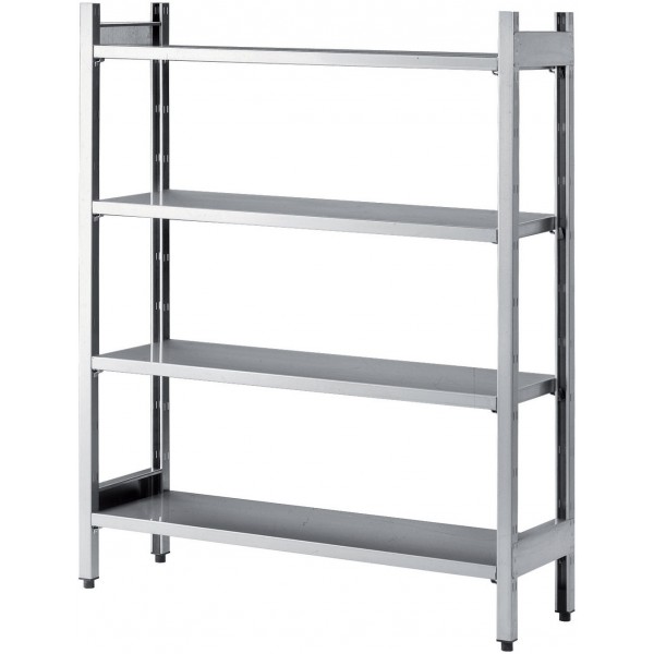 Casier a batterie inox 4 étagères pleines sans roulettes L : 1700 mm