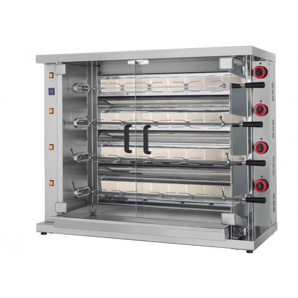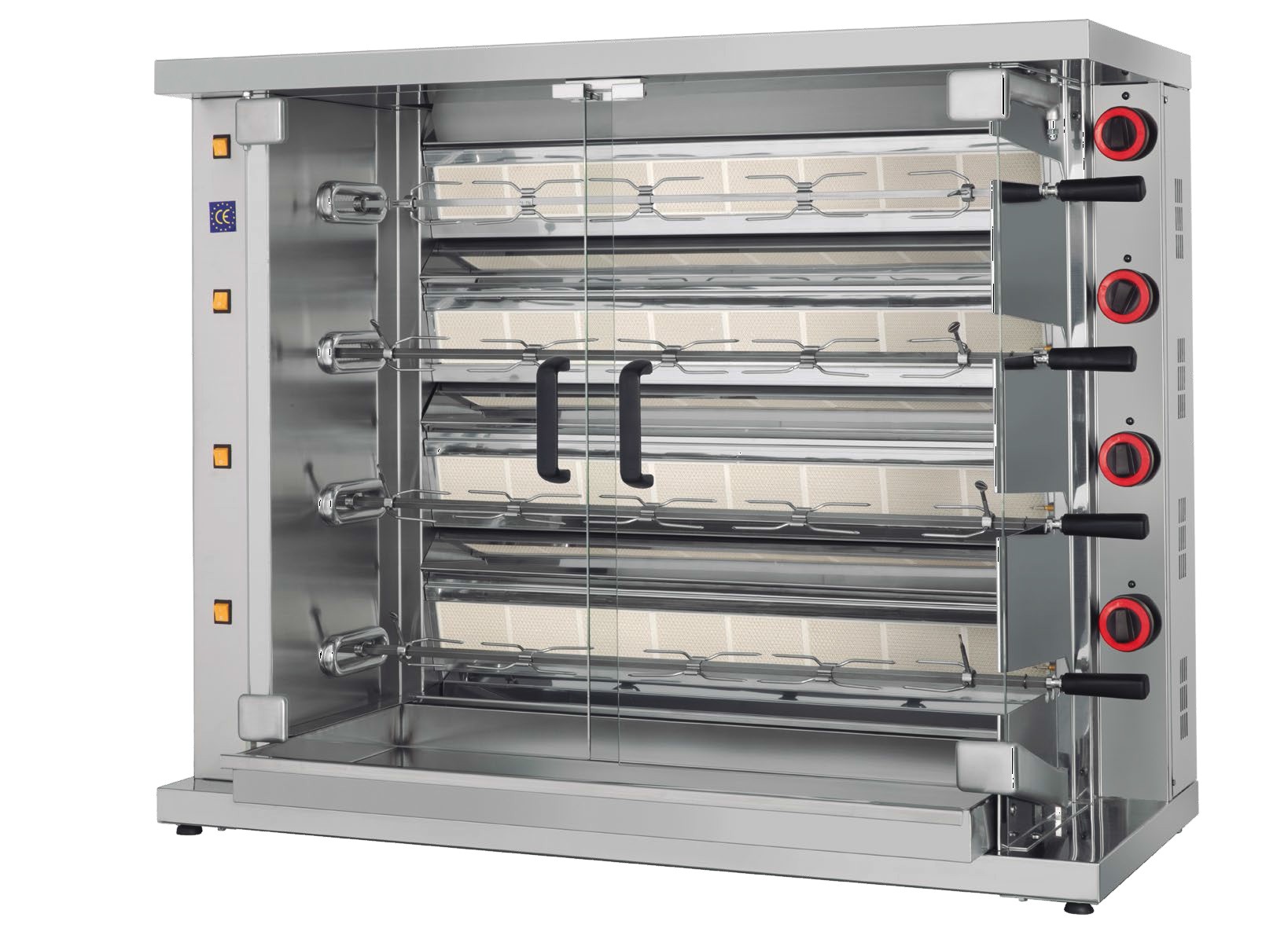 Rôtissoire industrielle à rayons infrarouge, avec brûleur à gaz, 4 broches, modèle DESIN 4, 24 poulets