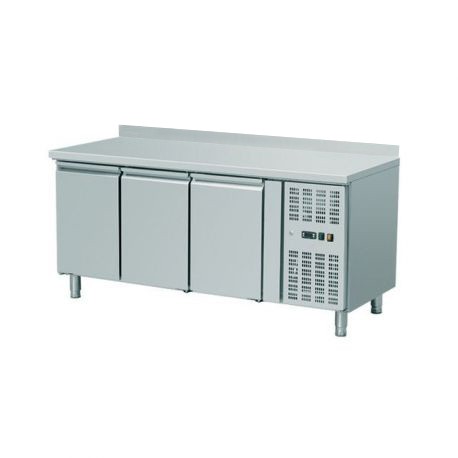 Meuble réfrigéré gamme 600, avec dosseret, acier inoxydable, vous permet de stocker directement les aliments frais sous les postes de travail.