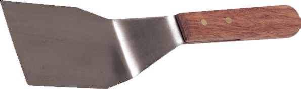 Spatule de cuisine à hamburger inox manche en bois, conçue spécialement pour l'utilisation sur les plaques à snacker.