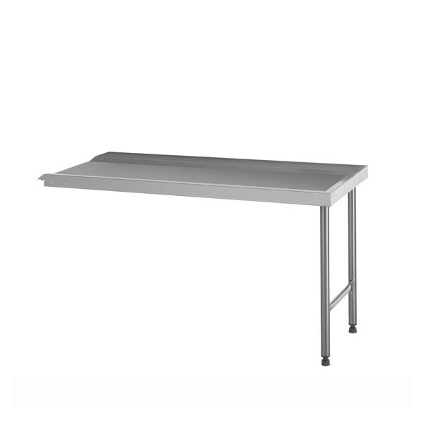 Table de glissement avec plage arrière sur-mesure, raccordable sur une machine ou sur une autre table, avec une structure robuste en acier inoxydable, idéale pour les professionels de la restauration.