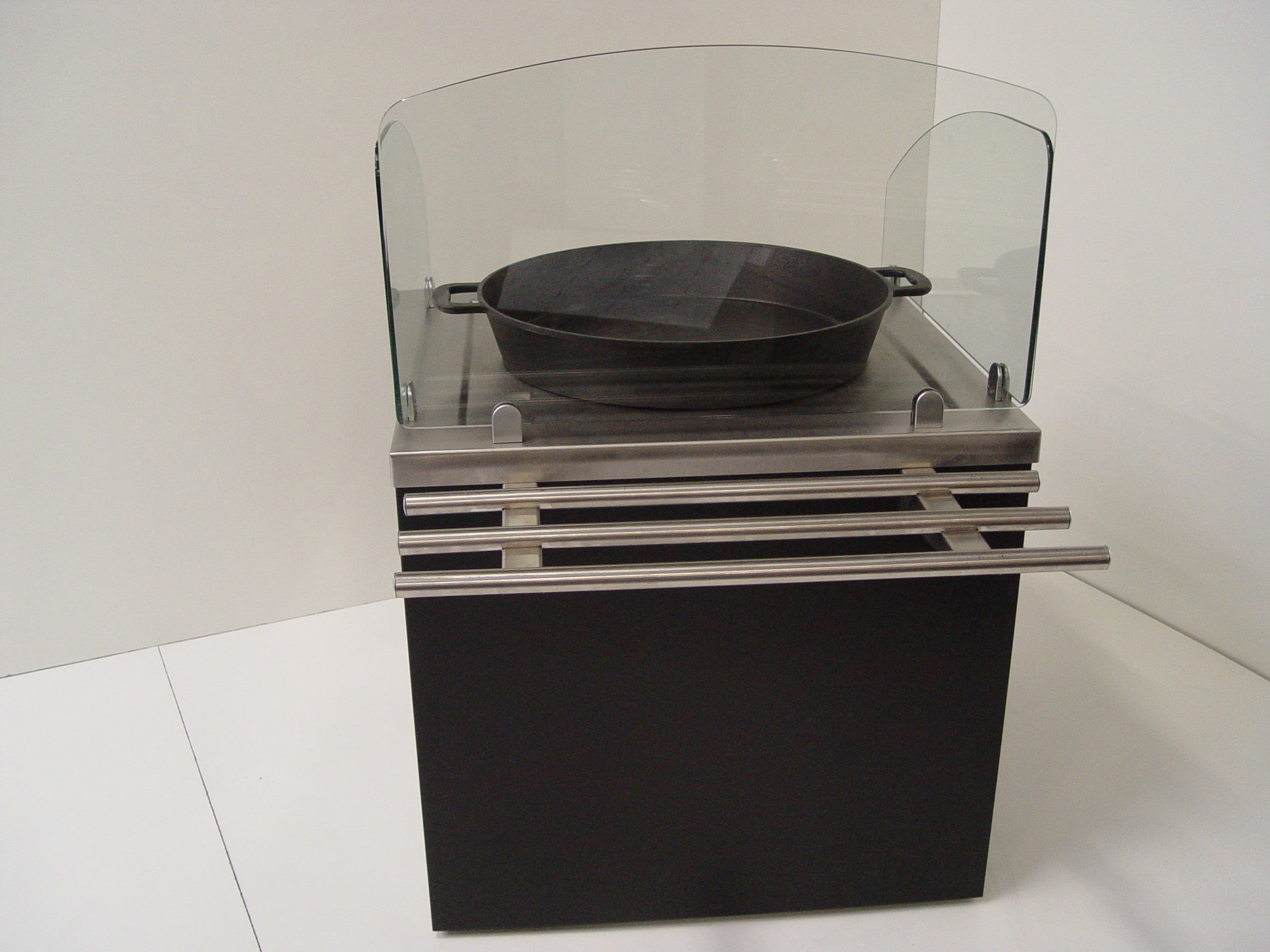 Vitrine d'agencement pour rotisserie, meuble cuisson poelon special paella
